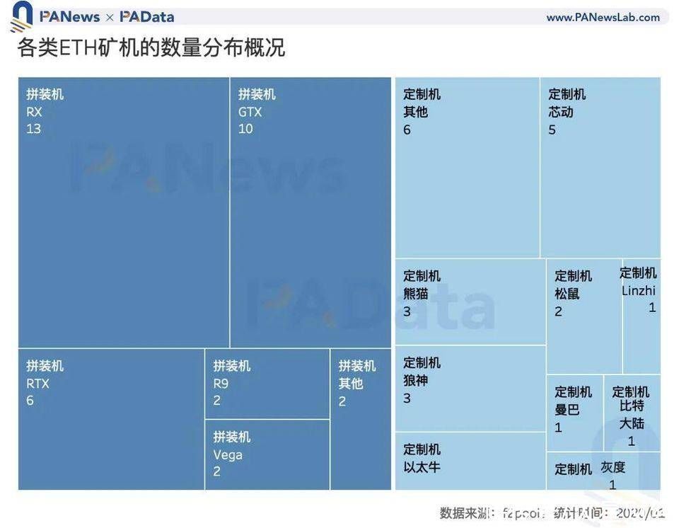 ETH 矿机可以分为拼装机和定制机,2020 年定制机的快速发展是 ETH 矿业逐渐成熟的一个标志,也是未来 ETH 矿业的一个发展方向。根据 F2Pool 的统计,截至 2021 年 1 月末,市场上共有 60 款 ETH 矿机,其中拼装机共有 35 款,占比 58.33%,定制约为 25 款,占比约为 41.67%。